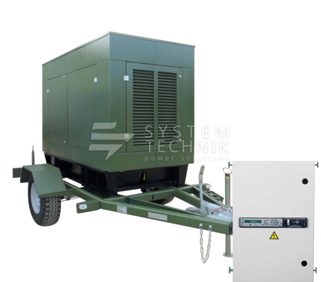 - ССМ ЭД-50-Т400-2РКМ1 в шумозащитном кожухе на шасси с АВР на прицепе